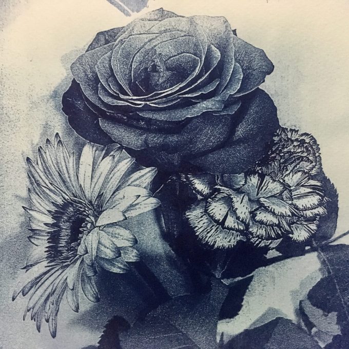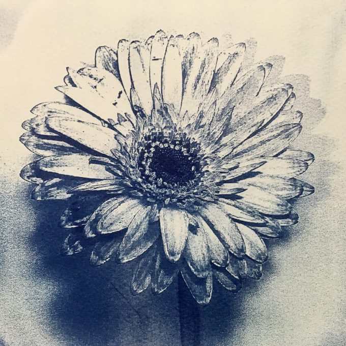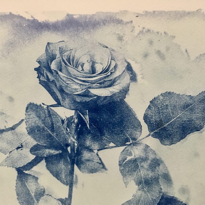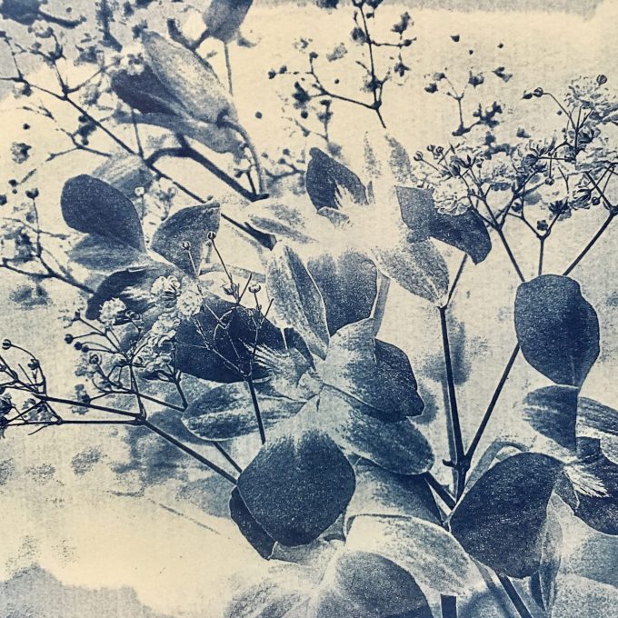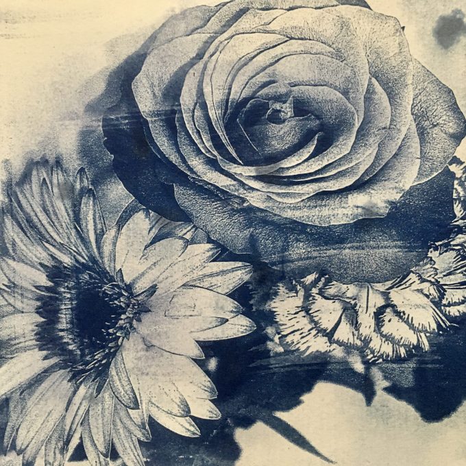 Serie di stampe di fiori eseguiti tramite tecnica della cianotipia; antico metodo di stampa fotografica a contatto mediante raggi UV, caratterizzata dal tipico colore blu cobalto.