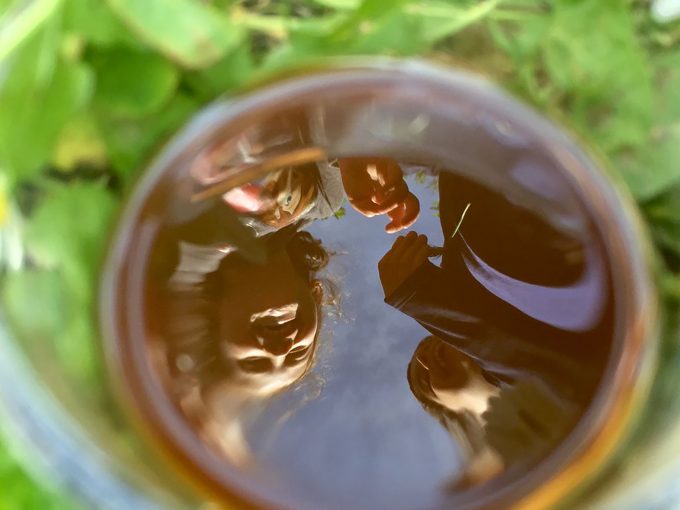 “Il caffè sospeso” che veniva offerto nella nostra scuola tutti i mercoledì dai bambini alle famiglie e alla città con l’extra di un messaggio pensato sempre dai bambini sulla loro idea del mondo e della vita, oggi è diventato un ECOINGANNO. Esce dalla scuola, e questo è il nostro intento! Di regalare le nostre scoperte a tutti !!! come un gioco che tutti possono provare a fare se dotati di un cellulare e non necessariamente della passione per il caffè, perché i nostri bambini ci ricordano che “il caffè lo bevono le mamme”, ma hanno assimilato le emozioni che non possono essere disgiunte dal caffè e dall’idea di accoglienza e condivisione che è diventata espressione di una cultura. La superficie che ha fatto da specchio alla natura del nostro parco rivela che abbiamo scelto questo connubio caffè e natura perché sappiamo che “il caffè piace alle piante”, in particolare piacciono i fondi scartati del caffè che la aiutano come fertilizzante, quindi cielo, terra, fiori, alberi immersi nella superficie del caffè si trasformano in inganni divertenti…sembrano schiuma, sembrano zucchero, o decontestualizzano il caffè stesso che si trasforma in un occhio, in un sole, o si materializza e profuma di erba o di terra. Le istruzioni che troverete nel qrcode vi aiuteranno a provare proprio come abbiamo fatto noi.